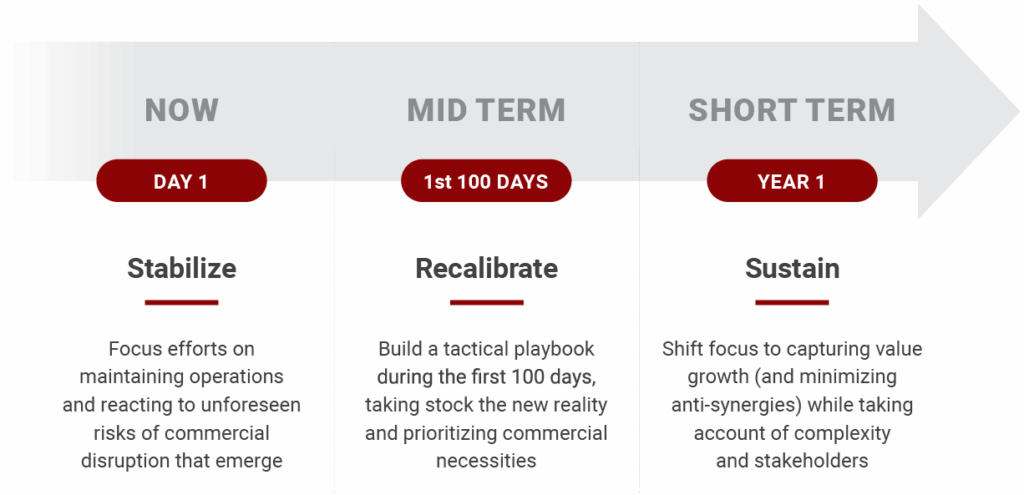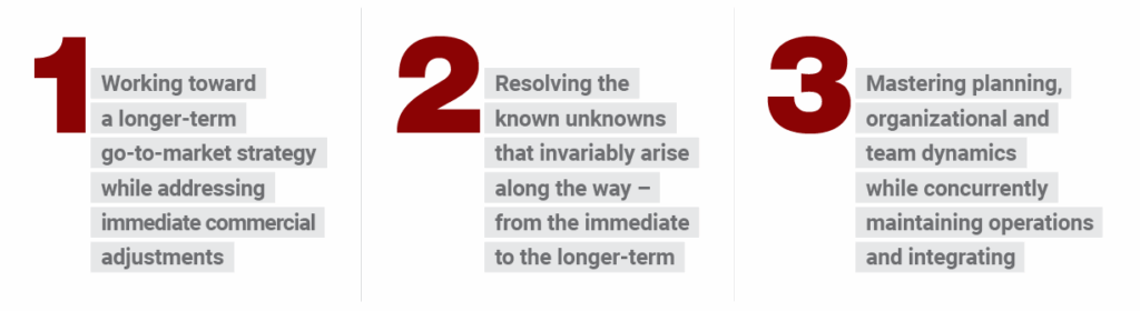Virtually any PMI will deal with turbulence, requiring timelines and hypotheses to be adjusted. In the euphoria of identifying positive elements in the investment thesis and signing the deal, even the most cautious leaders may underestimate the time and effort needed to iron out the details during the post-merger stage.