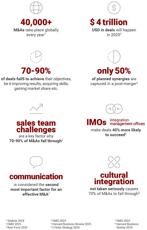 A critical point that we’ve seen many executives underestimate is how deeply different commercial models can clash – even when product portfolios appear similar on paper. As post-merger teams scramble to stabilize operations, the biggest barriers to value creation are often related to misaligned go-to-market (GTM) approaches, pricing structures and sales cultures.
